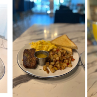 Slow-braised lamb chops & au jus with two eggs your way & brioche toast. Your choice of creamy grits, breakfast potatoes, dressed greens or fresh fruit.